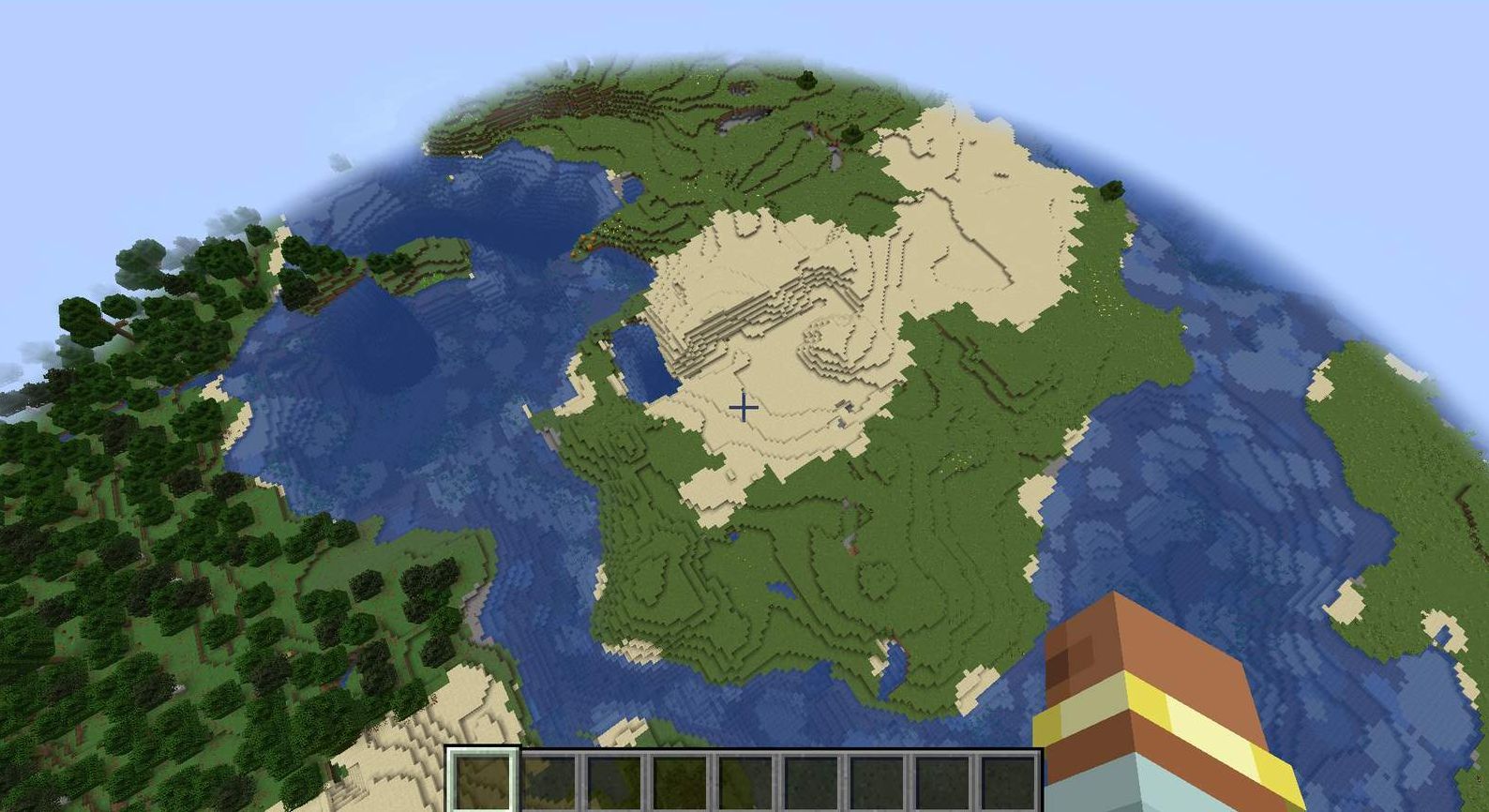 Tip: If it's difficult to find a good spot, try flying higher. The larger biomes setting provides plenty of space once above the terrain.